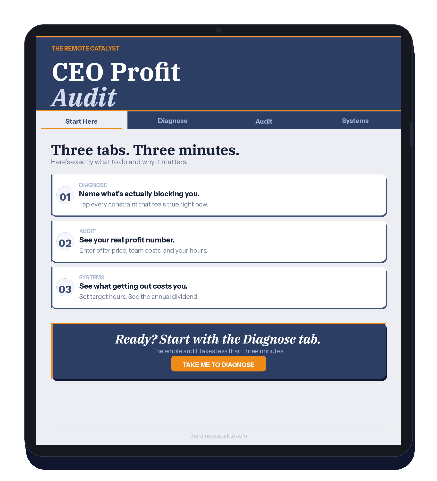 This free audit takes three minutes. It shows you your Sanity Margin, where your biggest operational drag is, and what it's actually costing you to stay in the day-to-day.