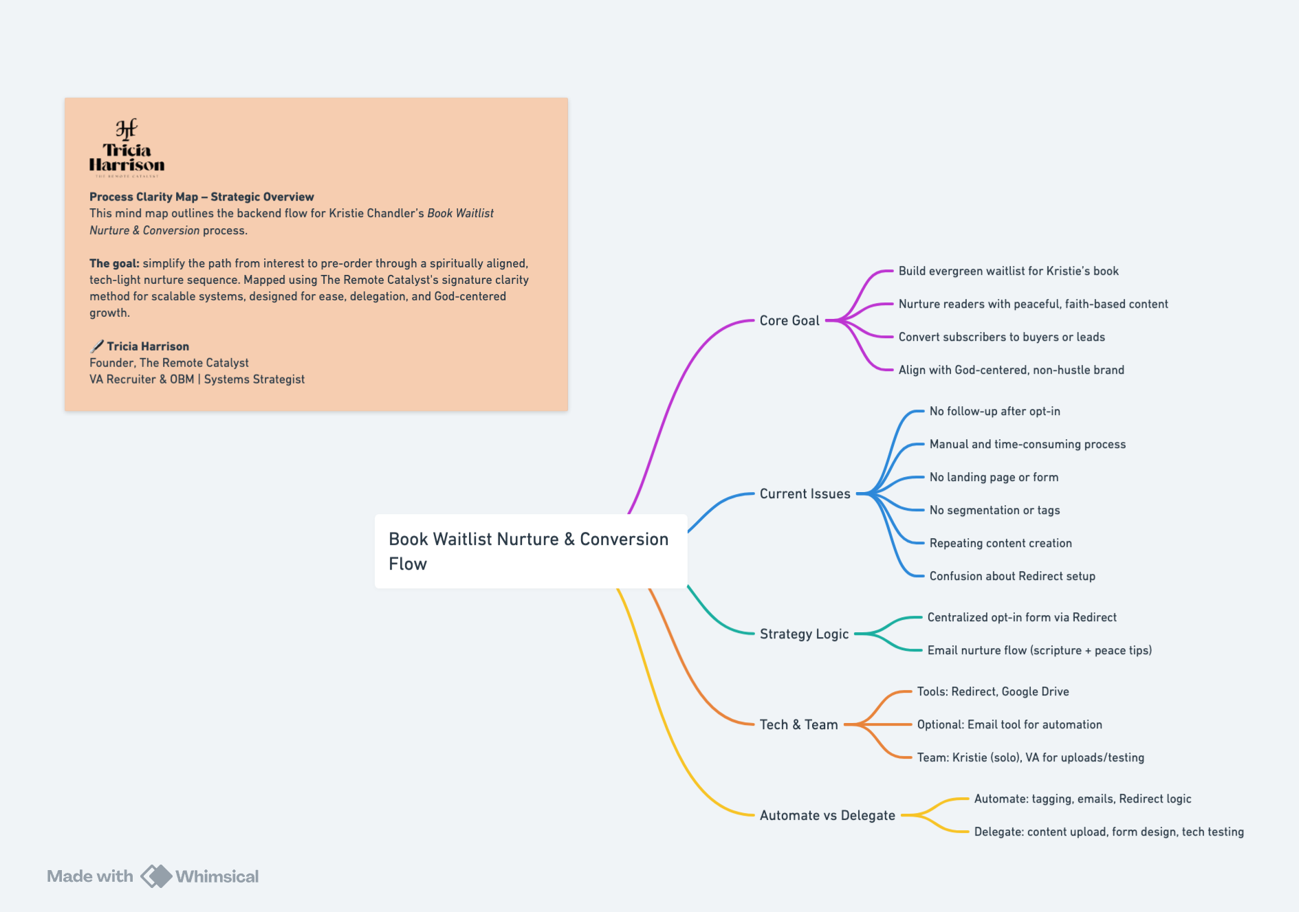 The Process Clarity Map takes one important process, such as: client onboarding, your launch sequence, team delegation, whatever keeps eating your time and turns it into something your team can actually follow.